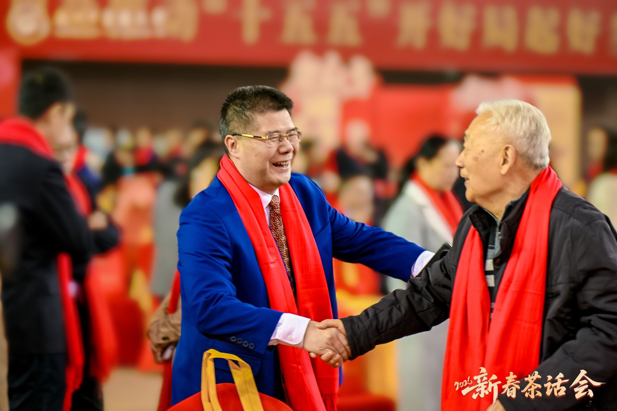 学校领导和历届校领导给全校师生和海内外校友拜年,走到代表们中间互致问候,祝祖国繁荣富强,祝大家新春快乐、身体健康、工作顺利。