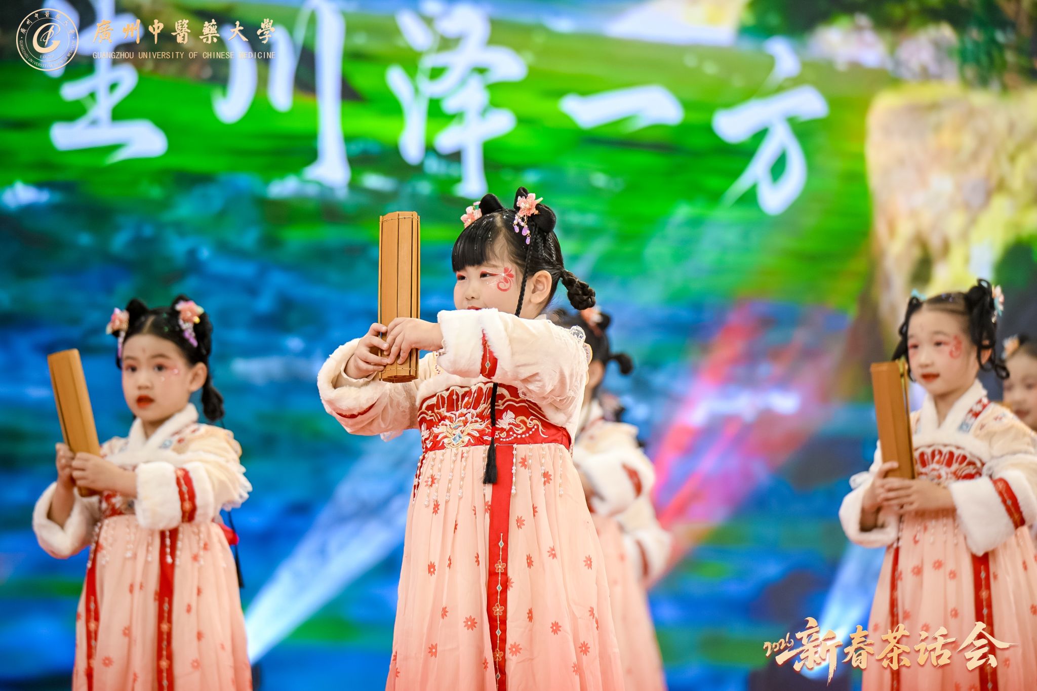 幼儿园小朋友们表演舞蹈《杏林童韵贺新春》