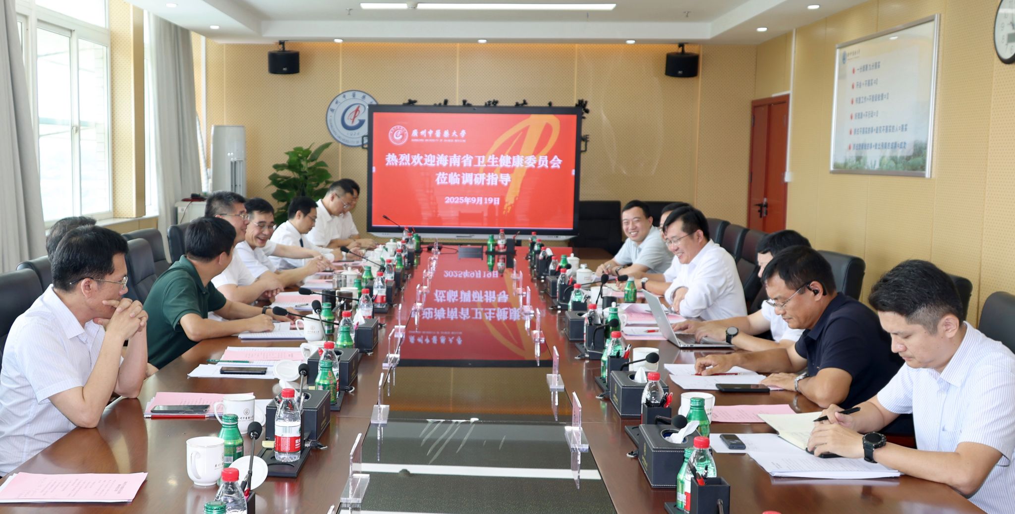 海南省卫生健康委办公室、科教处、中医药管理局,三亚市卫生健康委相关同志,学校副校长刘中秋及有关部门负责同志一同参加座谈交流,座谈会由学校党委常委、副校长史亚飞主持。